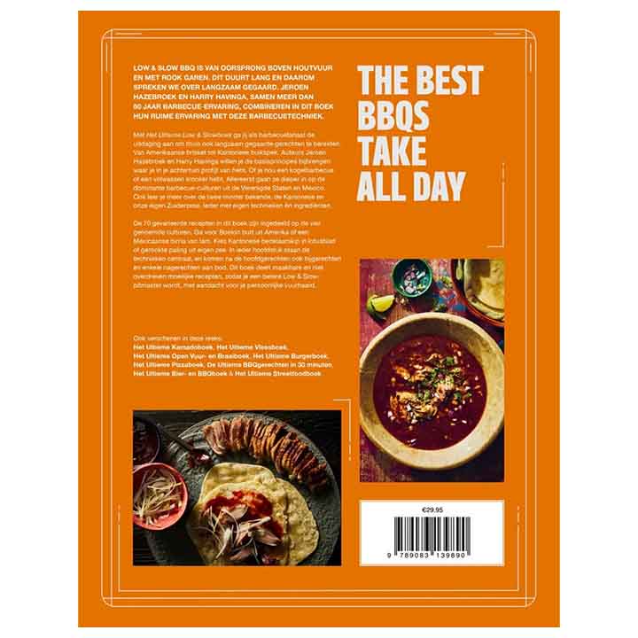 Low & Slow BBQ is van oorsprong boven houtvuur en met rook garen. Dit duurt lang en daarom spreken we over langzaam gegaard. Jeroen Hazebroek en Harry Havinga, samen meer dan 60 jaar BBQ-ervaring, combineren in dit boek hun ruime ervaring met deze BBQ-techniek