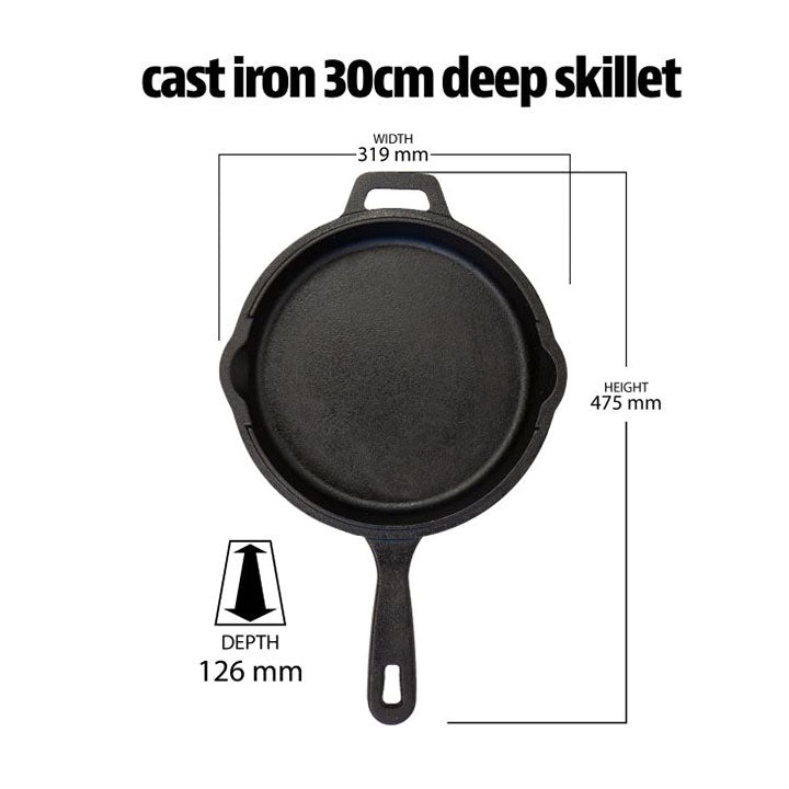 De koekenpan heeft een lange, gemakkelijk te hanteren handgreep met een extra hulpgreep om te koken, te manoeuvreren en te serveren in dezelfde koekenpan. De diepe koekenpan heeft twee schenktuiten met brede rand en een deksel dat als tweede koekenpan kan dienen of erop kan worden gelegd om vocht in te sluiten. De campingoven heeft een inhoud van 4 liter en is geschikt voor recepten voor groepen van 4. Met het nauwsluitende deksel kunt u de warmte binnenhouden terwijl de ingebouwde bobbels het voedsel vochtig houden. U kunt bakken, braden, garen en stoven in dezelfde gemakkelijk schoon te maken schaal. Met de leren handschoenen kunt u het hete gietijzer snel verplaatsen en uw handen beschermen tegen de hitte.