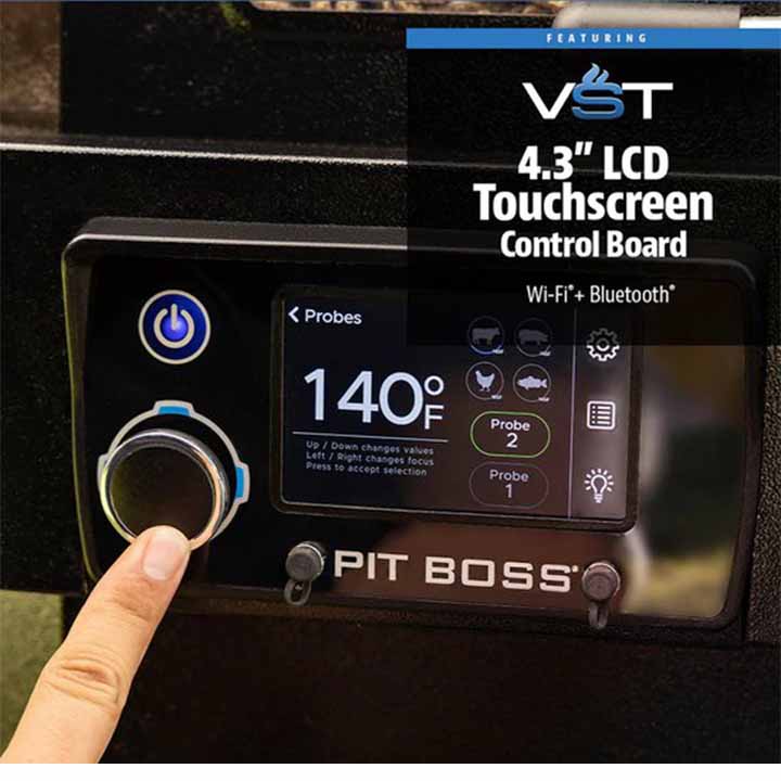 De PB1600CST is uitgerust met de meest innovatieve en geavanceerde Pit Boss-functies tot nu toe. Dat omvat een 4,3-inch touchscreen-controller waarmee u de volledige controle over uw grill hebt en de instellingen naar wens kunt aanpassen, grilldiagnostiek kunt controleren vóór het koken en meer. Stel eenvoudig kooktemperaturen in van 66°C tot 200°C (150°F - 500°F) met stappen van 5 graden, terwijl Wi-Fi®- en Bluetooth®-connectiviteit u in staat stelt uw grill overal te bedienen en te controleren met de Pit Boss Grills -app .